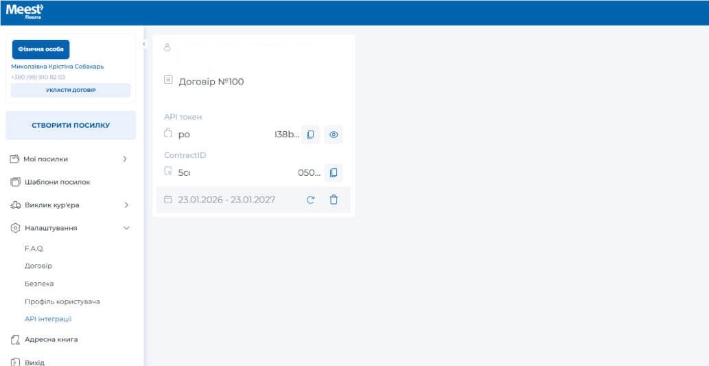 Після чого заключіть договір з Meest ПОШТА. В особистому кабінеті отримайте contractID та token.