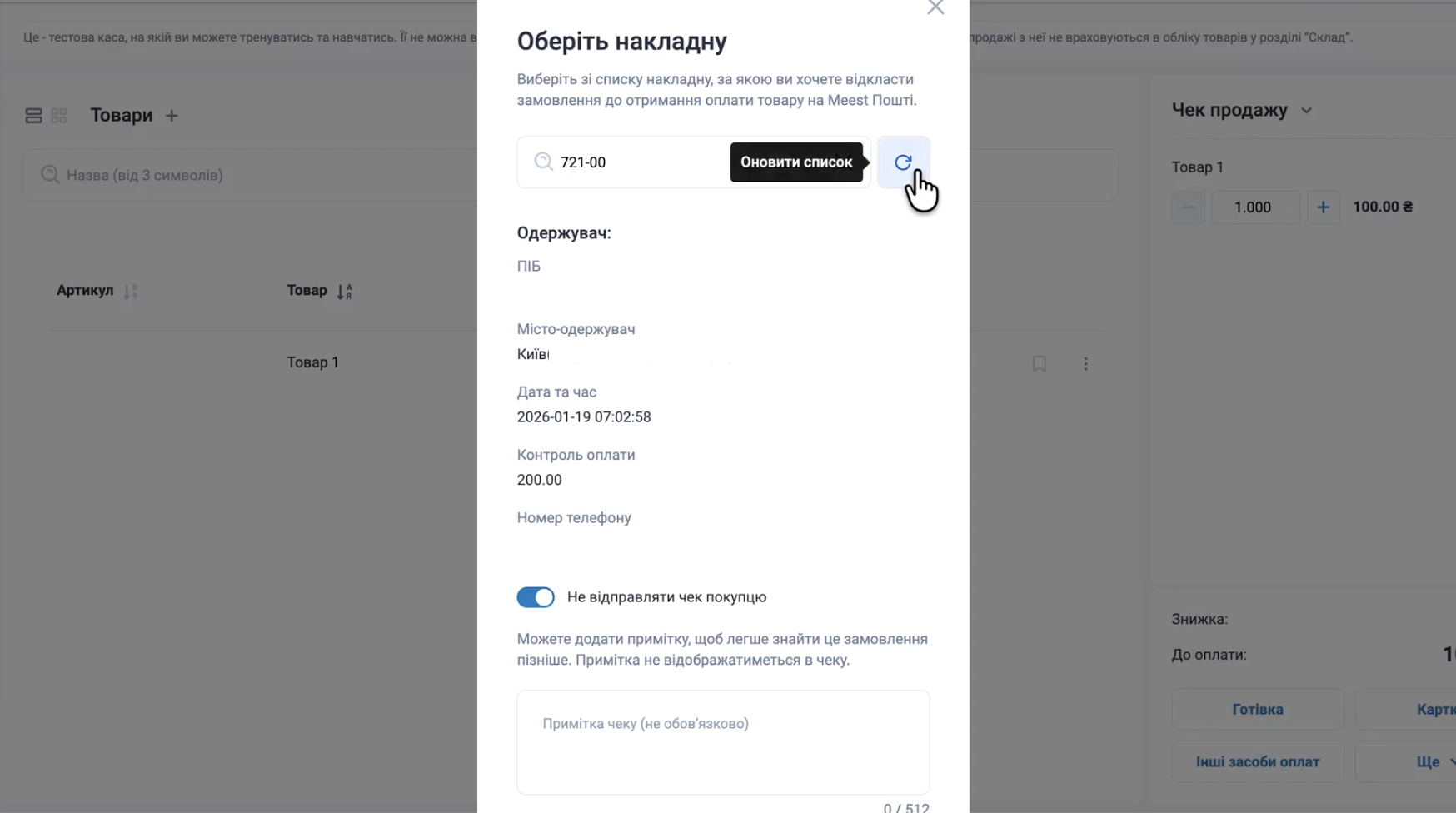 Як підвʼязати номер ТТН до чека?
