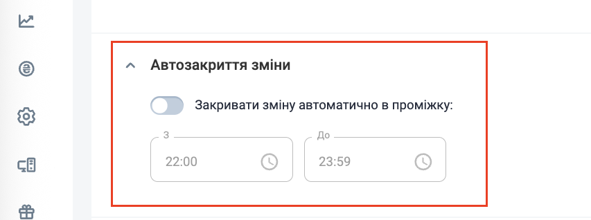 - Увімкніть перемикач “Закривати зміну автоматично”